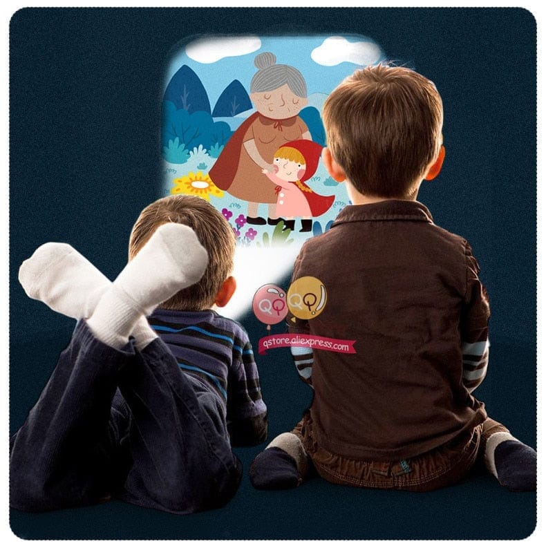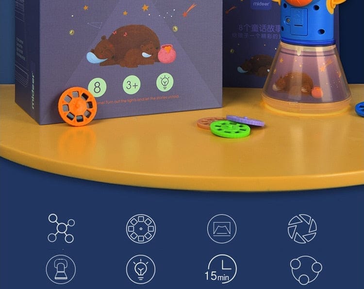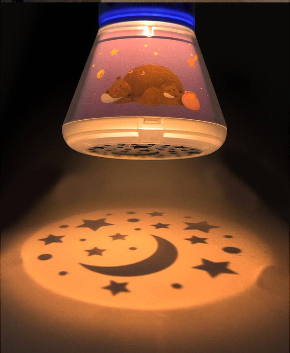 Linda Luminária e Projetor de Histórias Infantis para fazer com que a imaginação do seu filho se divirta com várias histórias.