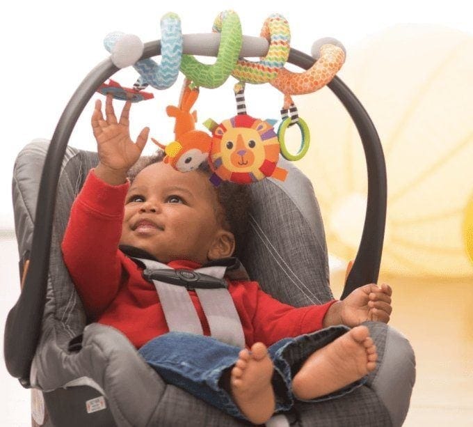 Os personagens pendurados incentivam o bebê a alcançar, puxar e apertar.