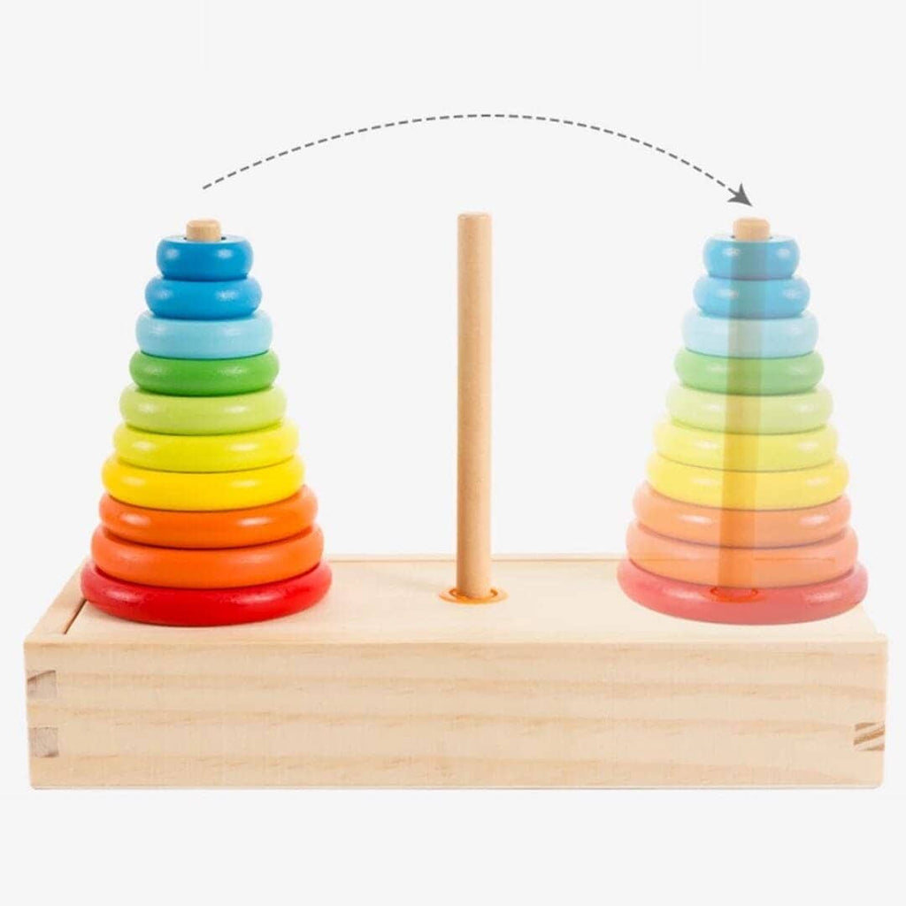 Torre de Hanói pode ser trabalhada em diferentes níveis de desenvolvimento e idades variadas. Na pré-escola, por exemplo, a partir dos 3 anos, pode-se investir em regras simples de separação de cores e tamanhos, ajudando na coordenação motora e na identificação de formas. De maneira mais ampla, a partir dos 6 anos (ou conforme desenvolvimento da criança), o foco é estabelecer estratégias para a transferência das peças.